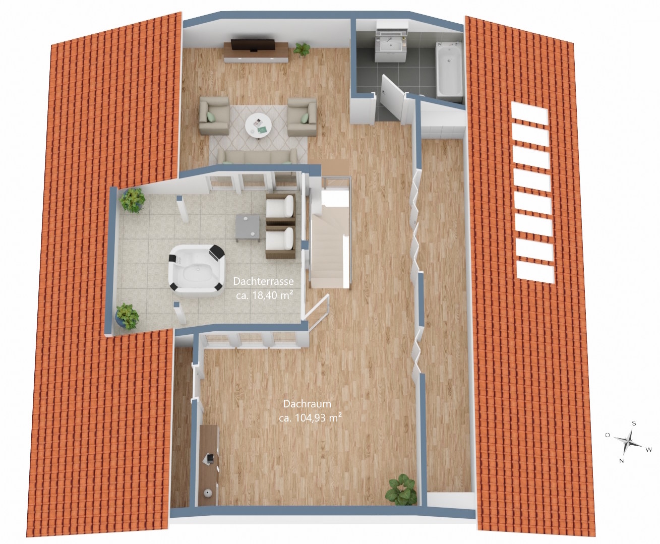 – Zusätzliche ca. 123,33 m² Nutzfläche im Dachgeschoss (wohnlich nutzbar)
