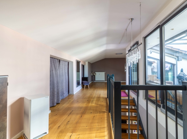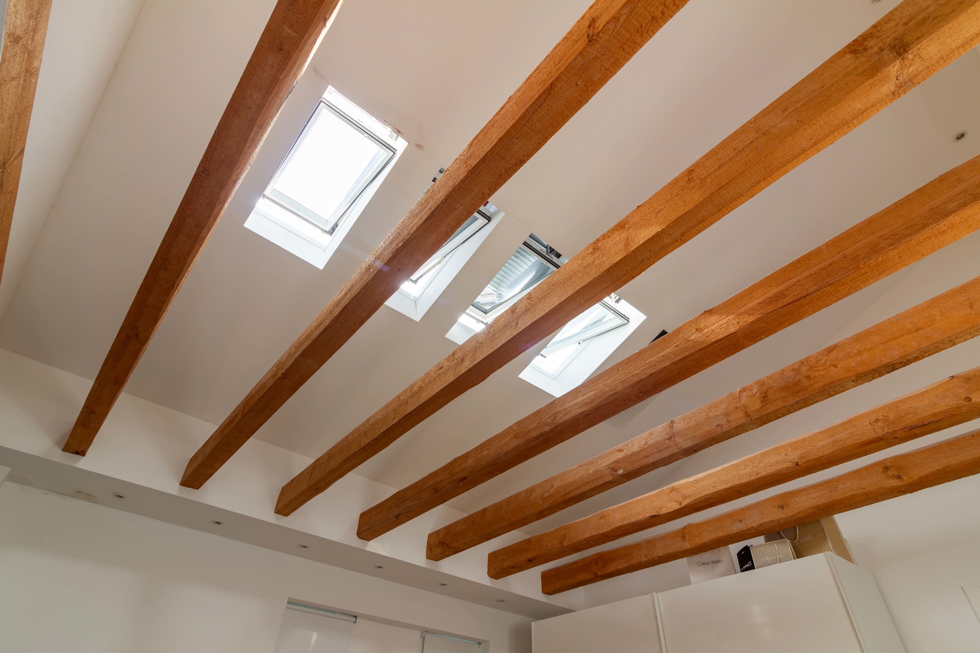 – Sichtbare Holzbalken und elektrisch steuerbare Dachflächenfenster für besondere Lichtverhältnisse