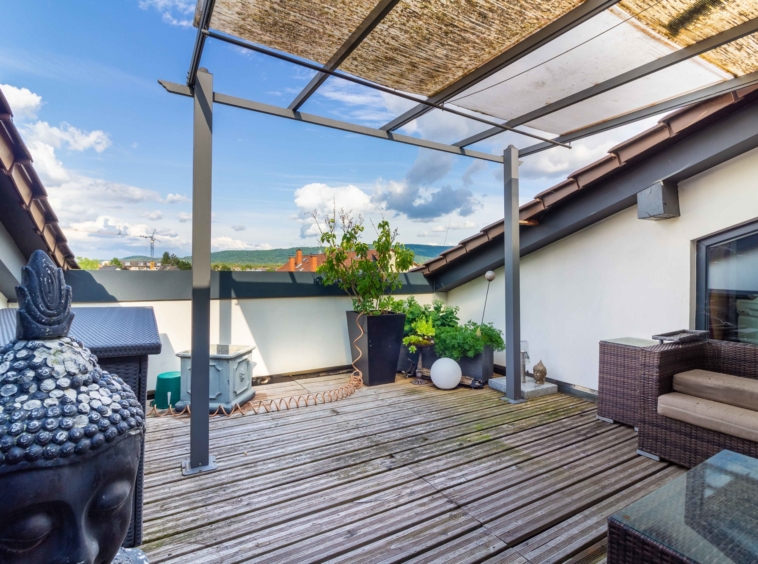 – Dachterrasse mit ca. 20 m² und Fernblick zur Bergstraße (Ost-Süd-Ausrichtung)